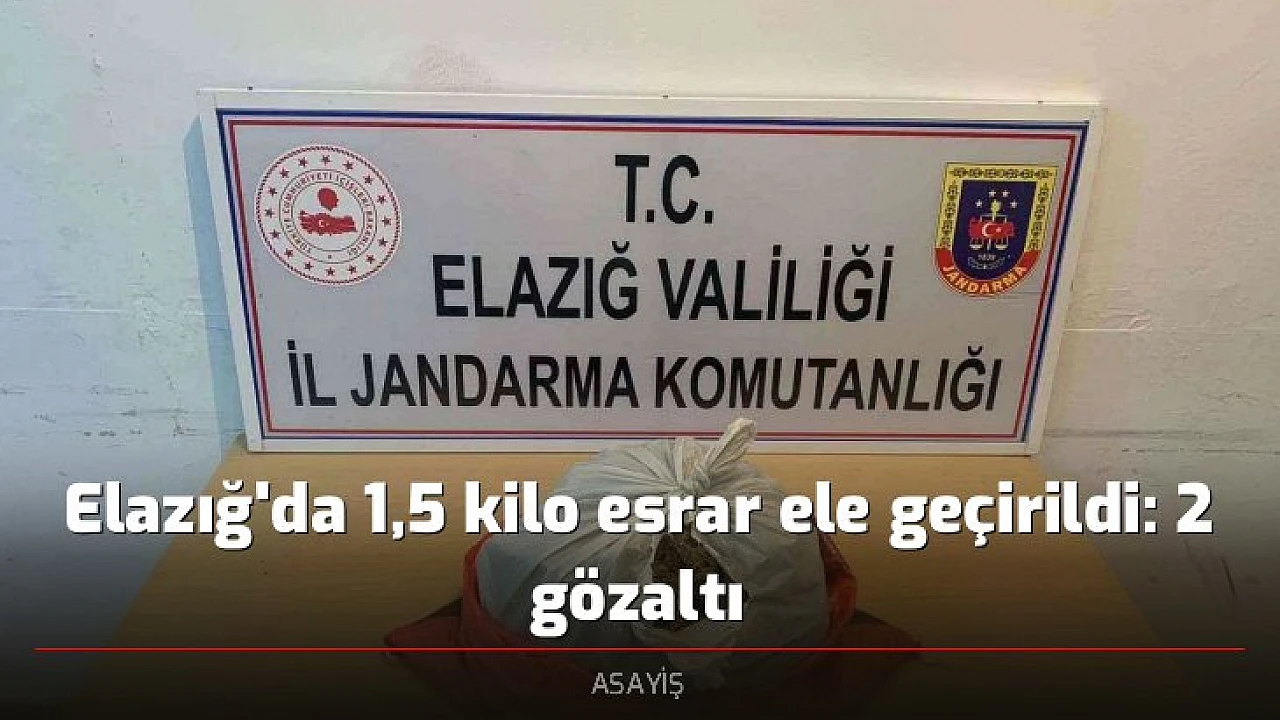 Elazığ'da jandarma ekiplerinin yaptığı çalışmada 1,5 kilo esrar ele geçirilirken, 2 şüpheli de gözaltına alındı.