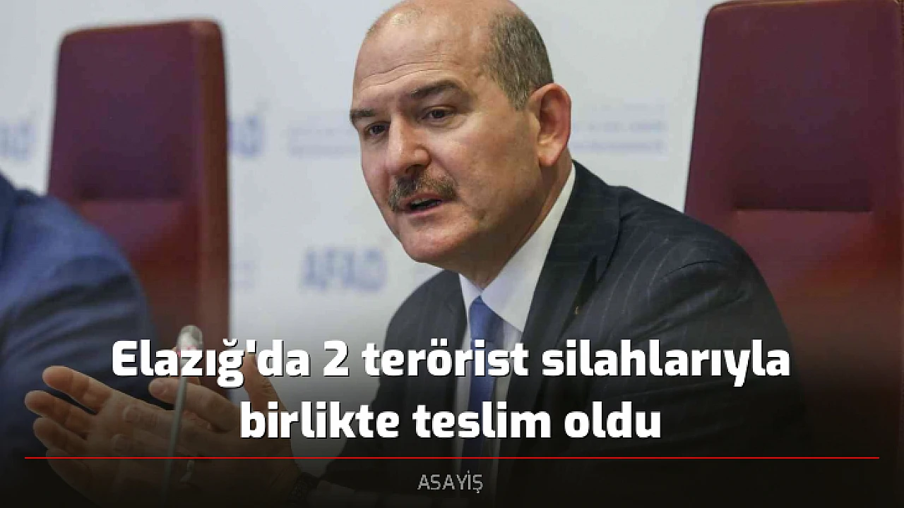 İçişleri Bakanı Süleyman Soylu, sosyal medya üzerinden 2 teröristin Elazığ İl Jandarma Komutanlığı ekiplerine silahlarıyla birlikte teslim olduğunu açıkladı. Bakan Soylu, yaptığı açıklamada, “Elazığ İl Jandarma Komutanlığımızın ikna çalışmasıyla, yurt içinde kırsalda faaliyette olan 2 PKK/KCK terör örgütü mensubu silahlarıyla birlikte jandarmamıza teslim oldu. Sarı torba korkulu rüyaları, terör örgütü bitiyor teslim olun” dedi.