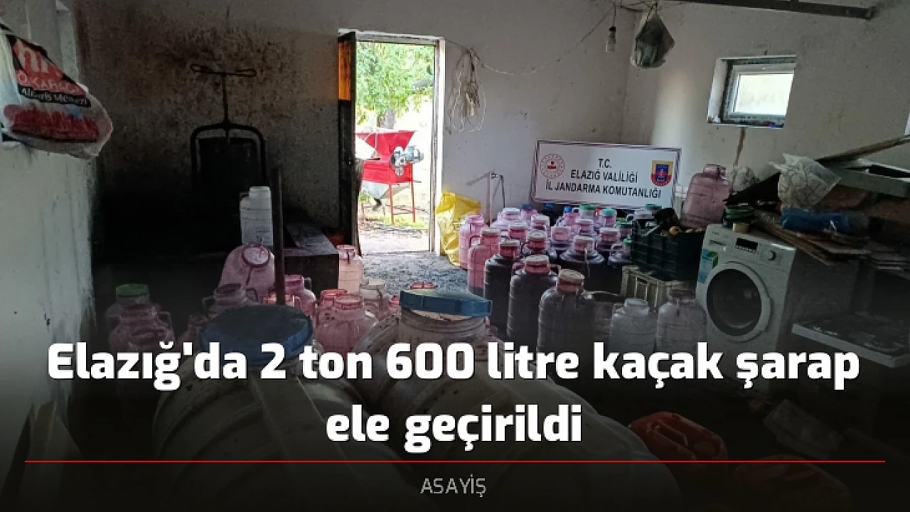 Elazığ İl Jandarma Komutanlığı ekiplerince yapılan çalışmalar sonucunda şüpheliler İ.Ç. ve M.M.’nin evde kaçak şarap ürettiği bilgisinin alınması üzerine iki farklı adrese eş zamanlı operasyon yapıldı. Operasyon sonucunda 2 ton 600 litre kaçak şarap ele geçirildi.