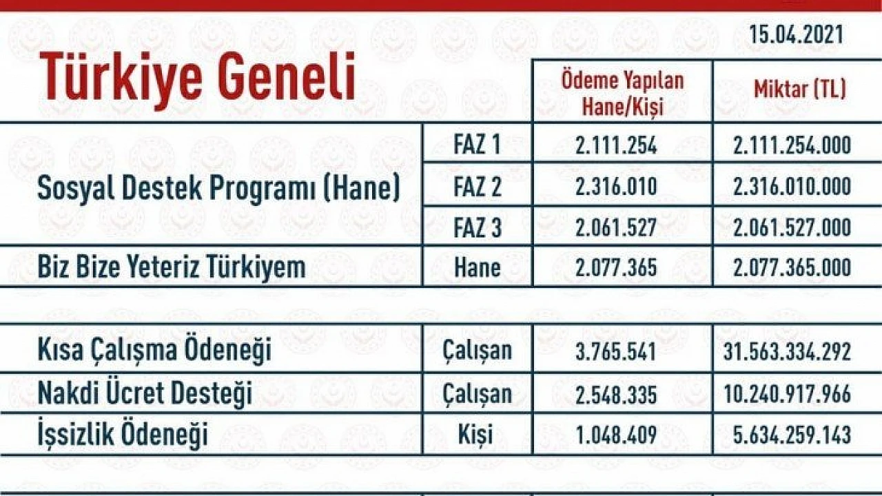 Aile, Çalışma ve Sosyal Hizmetler Bakanlığı ‘Sosyal Koruma Kalkanı’ kapsamında başvuru esaslı olarak ihtiyaç sahiplerine verilen nakdi yardım desteği verilerini paylaştı . Türkiye genelinde 60 milyar 38 milyon 892 bin 590 TL nakdi yardım yapıldı. Bu kapsamda Elazığ’da ise 11 Mart 2020 tarihinden bu yana toplamda 243 milyon 155 bin 724 TL nakdi destek verildiği kaydedildi.