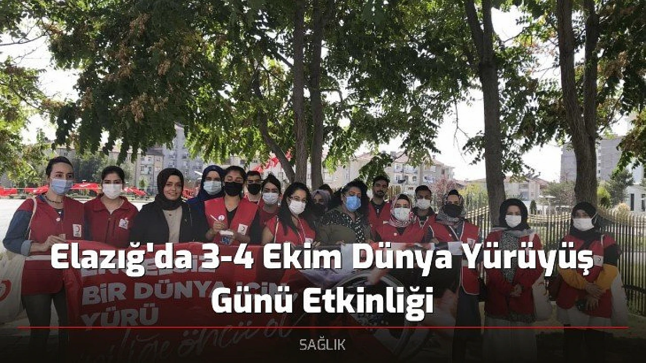 3-4 Ekim Dünya Yürüyüş Günü kapsamında fiziksel aktivite ve sağlıklı beslenmenin önemini vurgulamak için Türk Kızılay Elazığ Şubesi tarafından etkinlik düzenlendi. Etkinlikte yürüyüş yapılarak, katılan vatandaşların sağlık taraması, kilo, şeker, tansiyon kontrolleri, boy ölçümü yapılarak vücut kitle endeksi hesaplandı. Anı zamanda daha fazla fiziksel aktiviteye teşvik etmek amacı ile katılımcılara adım sayar hediye edildi.