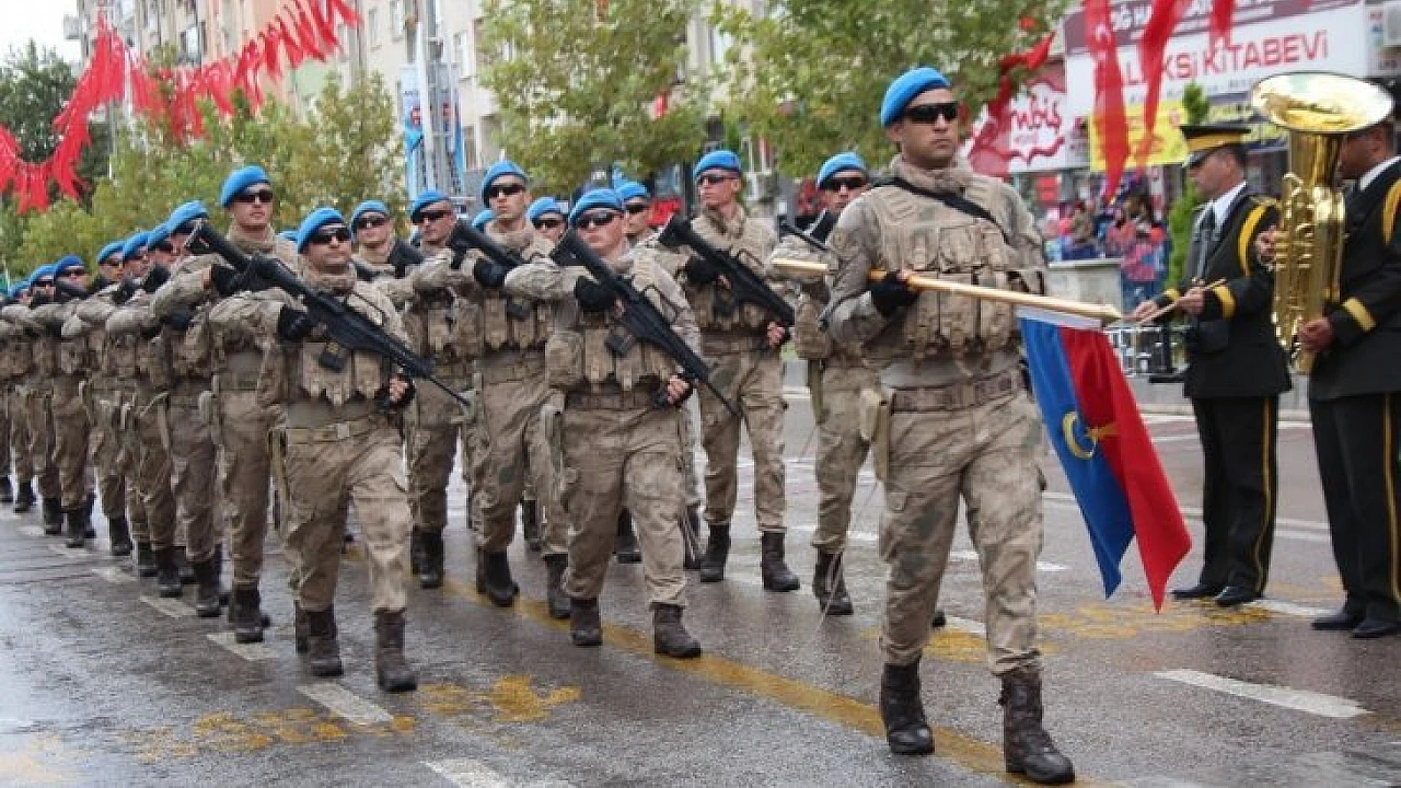 Daha sonra Mehteran ve 8. Kolordu Bando Takımı eşliğinde tören geçişi yapıldı. Çocuklar, tören geçişinde Türk Bayrağı sallayarak, kutlamalara eşlik etti.