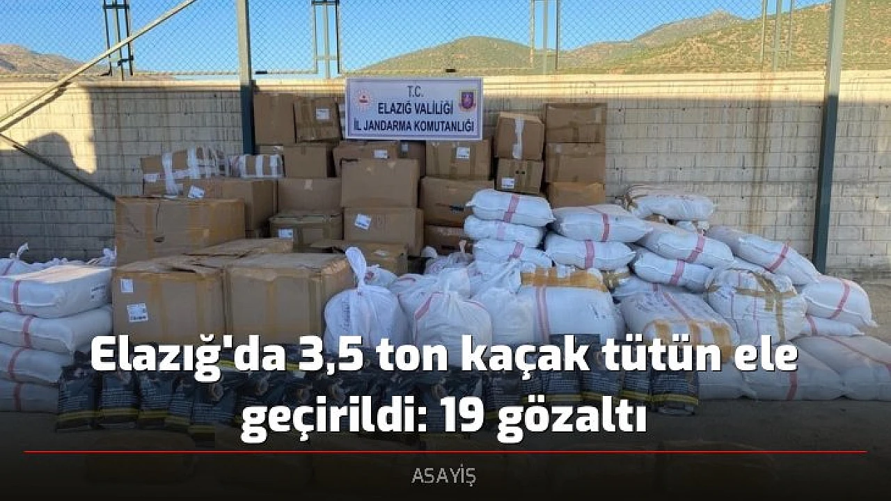 Elazığ'da jandarma ekiplerinin yaptığı operasyonda 3,5 ton kaçak tütün ele geçirilirken, 19 şüpheli gözaltına alındı.