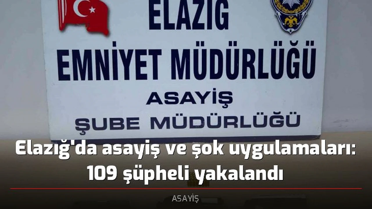 Elazığ'da İl Emniyet Müdürlüğü ekipleri tarafından son bir haftada gerçekleştirilen asayiş ve şok uygulamalarında 109 şüpheli yakalanırken bunlardan 22'si tutuklanarak cezaevine gönderildi.