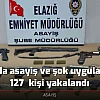 Elazığ İl Emniyet Müdürlüğünce kent genelinde son bir hafta içerisinde asayiş ve Yunus ekipleri tarafından gerçekleştirilen asayiş ve şok uygulamalar neticesinde aranan veya meydana gelen asayiş olaylarının şüphelisi olduğu tespiti ile toplam 127 şahıs yakalanırken bu şahıslardan 19’unun sevk edildikleri adli mercilerce tutuklanarak cezaevine gönderildikleri kaydedildi. Kayıp olarak aranan 8 şahıs bulunarak gerekli işlemler yapılırken, denetimler esnasında ise 13 adet ruhsatsız tabanca ve bu tabancalara ait 137 adet fişek, 1 adet pompalı tüfek ile 5 adet kurusıkı tabanca, 19,3 gram esrar, 7 gram metamfetamin, 9 adet sentetik ecza maddesi ele geçirildiği bildirildi.