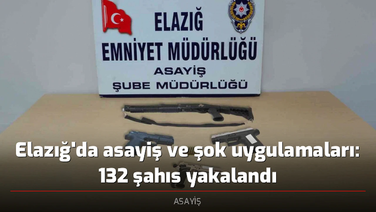 Elazığ İl Emniyet Müdürlüğünce kent genelinde son bir hafta içerisinde asayiş ve yunus ekipleri tarafından gerçekleştirilen asayiş ve şok uygulamalar neticesinde, aranan veya meydana gelen asayiş olaylarının şüphelisi olduğu tespiti ile toplam 132 şahıs yakalanırken, bu şahıslardan 25’i sevk edildikleri adli mercilerce tutuklanarak cezaevine gönderildi. Uygulamalarda kayıp olarak aranan 4 şahıs bulunarak gerekli işlemler yapılırken, denetimler esnasında ise 2 adet ruhsatsız tabanca ve bu tabancalara ait 12 adet fişek, 1 adet kurusıkı tabanca, 1 adet pompalı tüfek, 44,1 gram esrar, 224 adet hap, 1,5 litre sahte alkol ele geçirildi.