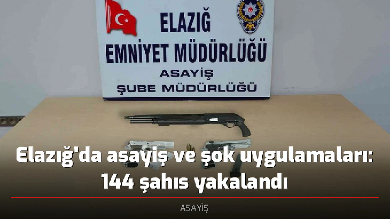 Elazığ'da son bir hafta içerisinde gerçekleştirilen asayiş ve şok uygulamalarında aranan veya meydana gelen asayiş olaylarının şüphelisi olduğu tespiti ile toplam 144 şahıs yakalandı.