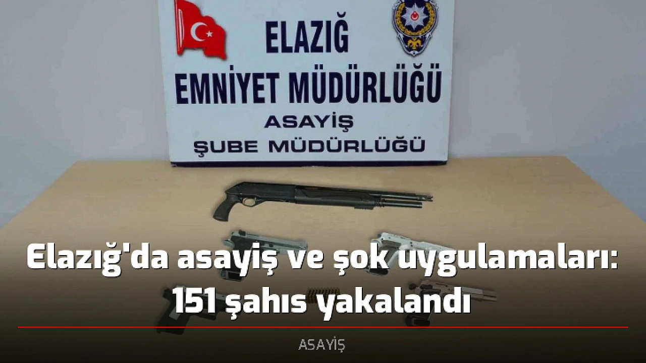 Elazığ İl Emniyet Müdürlüğü ekipleri tarafından gerçekleştirilen asayiş ve şok uygulamalarında 151 kişinin yakalandığı, bunlardan 21'inin sevk edildikleri adli mercilerce tutuklandığı belirtildi.