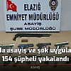 Elazığ'da İl Emniyet Müdürlüğü ekiplerince son bir hafta içinde gerçekleştirilen operasyonlarda 154 şüpheli yakalandı.