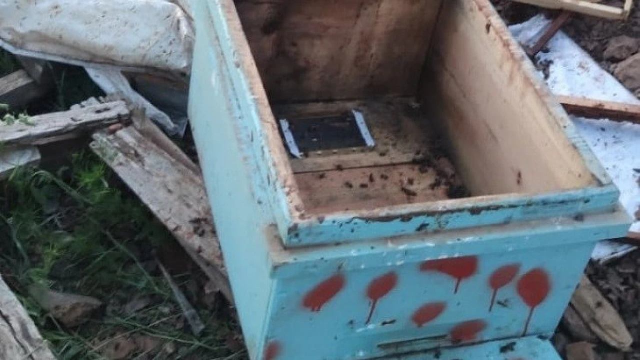 Elazığ'da ayıların saldırısına uğrayan arı kovanları parçalanarak kullanılamaz hale geldi.