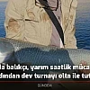Elazığ'da sportif olta balıkçılığı yapan Fatih Yayar, 20 kilo ağırlığında 150 santim büyüklüğündeki Fırat Turnasını 30 dakikalık mücadelenin ardından tutarak tekneye çıkarmayı başardı.