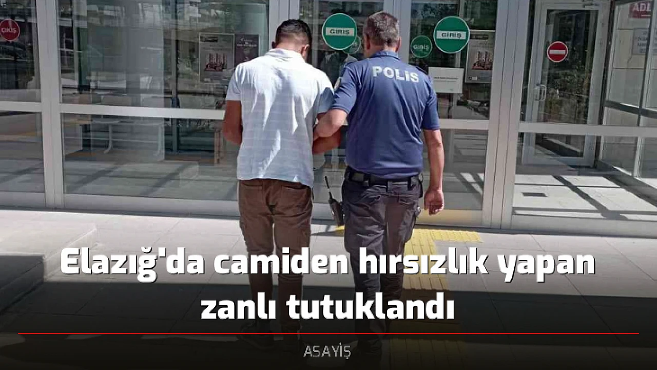 Elazığ'da iki camiden dizüstü bilgisayar ve kamera kayıt cihazı çalan zanlı, çıkarıldığı mahkemece tutuklanarak cezaevine gönderildi.