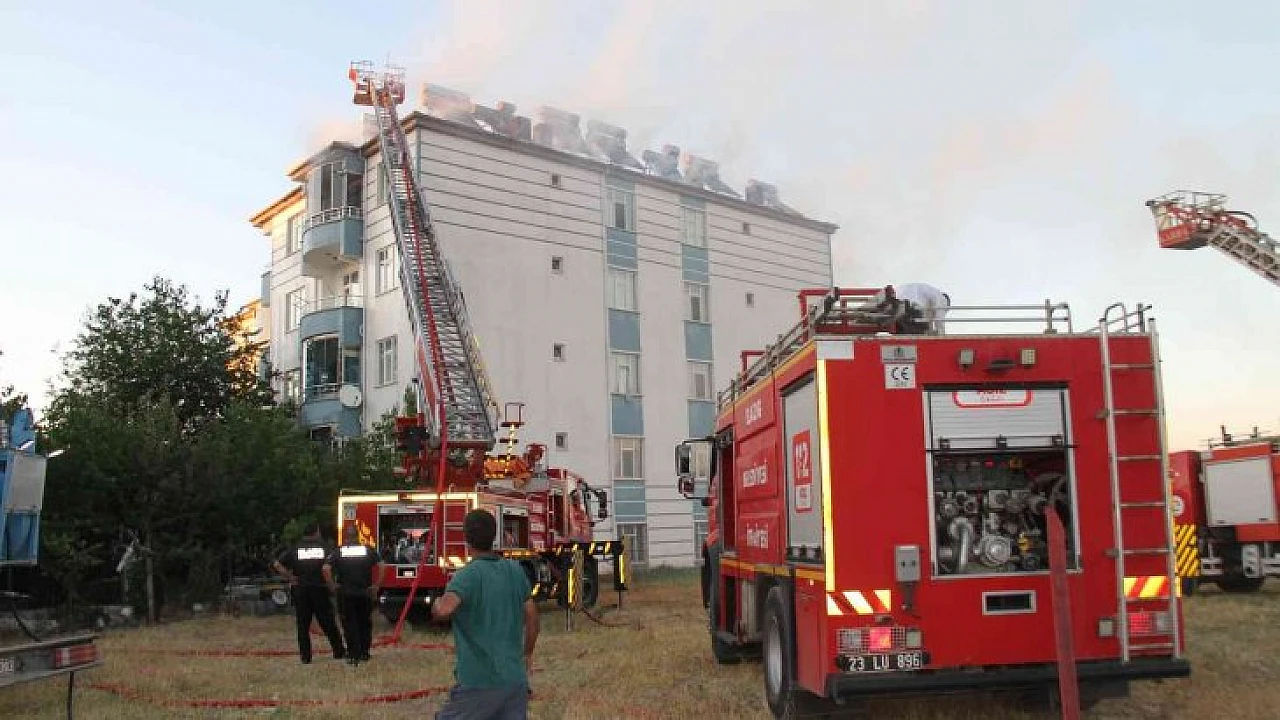 Elazığ'da bir binanın çatısında çıkan itfaiye ekipleri tarafından 1 saatlik çalışmayla söndürüldü. Yangını vatandaşların film izler gibi izlemesi dikkat çekti.