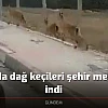 Elazığ’da merkeze inen dağ keçileri cep telefonu ile görüntülendi.