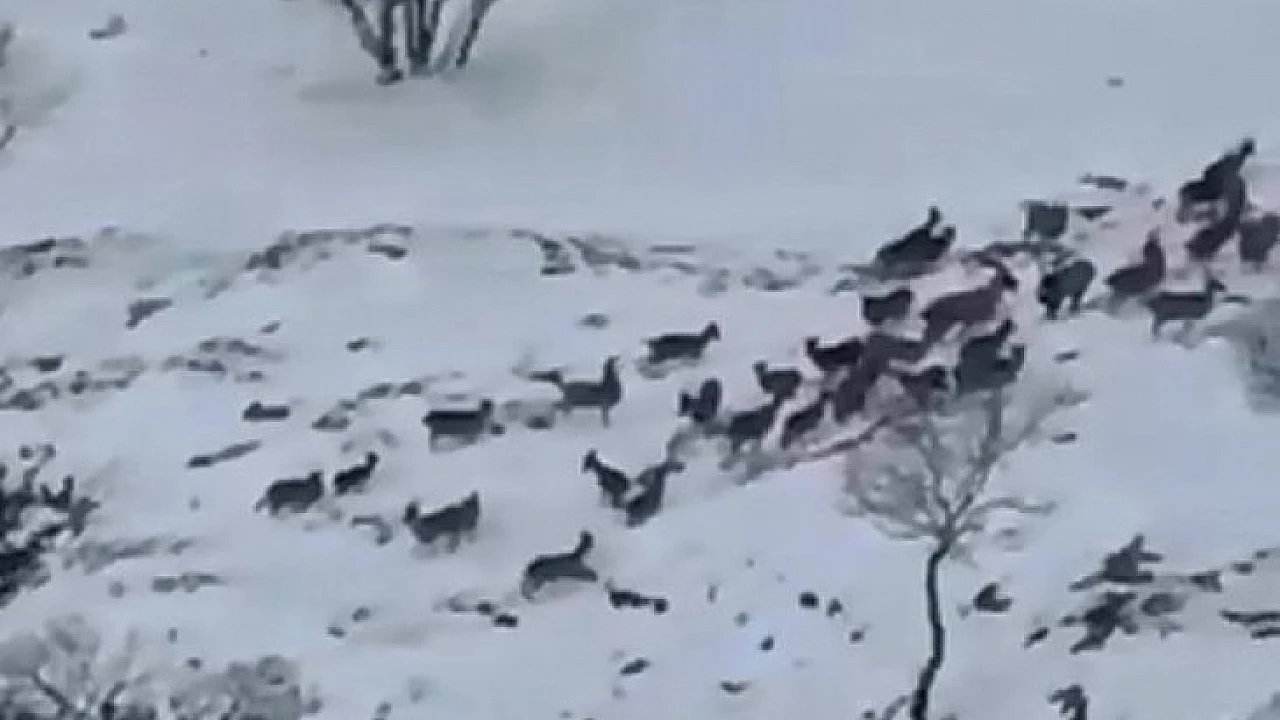 Elazığ’ın Karakoçan ilçesine bağlı Golan köyü mevkiinde dağ keçileri görüldü. O anlar ise yöre sakinlerinin cep telefonuna saniye saniye yansıdı. Karla kaplı arazide bir süre gezen sürü halindeki dağ keçileri daha sonra gözden kayboldu.