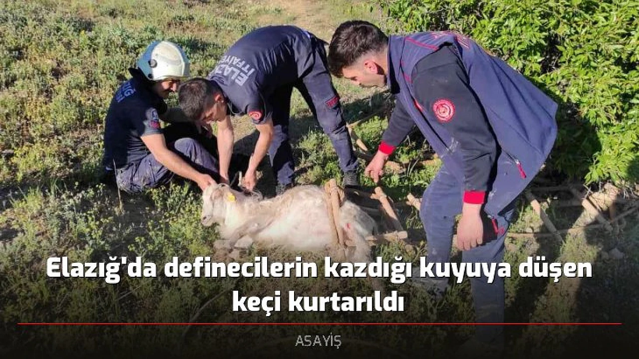 Olay, merkeze bağlı Sugözü Mahallesi’nde bulunan boş bir arazide meydana geldi. Edinilen bilgiye göre, keçilerini otlatan sürü sahibi çoban, keçilerinden bir tanesi defineciler tarafından kazılan 20 metre derinliğindeki kuyuya düştüğünü fark etti. Kendi çabasıyla keçiyi kurtarmak isteyen fakat başarısız olan çoban, durumu Elazığ Belediyesi İtfaiye Amirliği ekiplerine bildirdi. Kısa sürede olay yerine gelen ekipler, keçinin düştüğü kuyunun içine merdivenle girerek hayvanı bulunduğu yerden kurtarıp sahibine teslim etti.