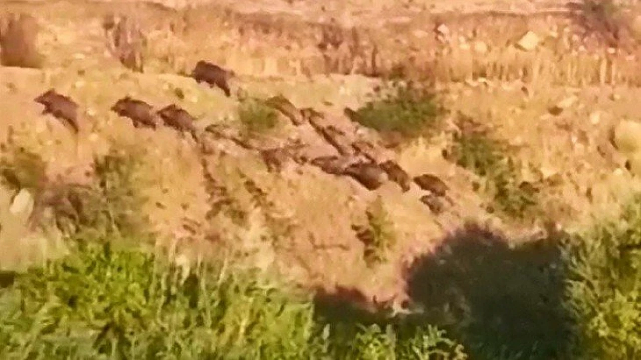 Elazığ'da domuz sürüsünün kaçış anı görüntülendi