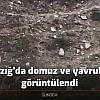 Edinilen bilgiye göre, sürüsünü otlatan bir çoban, sürünün yakınlarında bir domuz ve 2 yavrusunu gördü. O anları cep telefonu ile kaydetmek isteyen çobanı fark eden domuzlar, daha sonra uzaklaşmaya başladı.