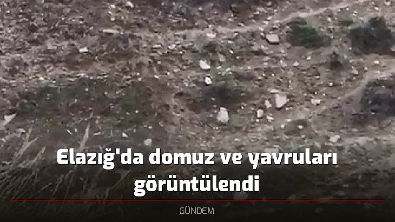 Elazığ'da dağda yiyecek arayan domuz ve 2 yavrusu görüntülendi.