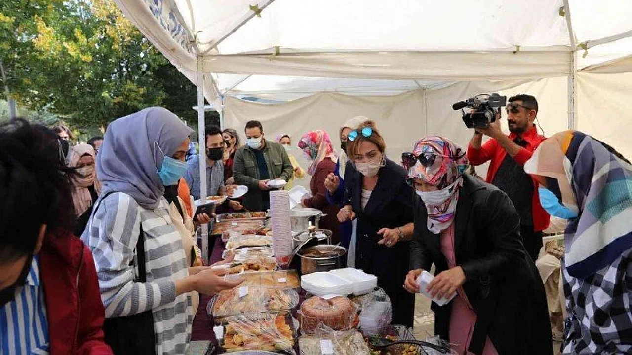 Elazığ’da Fırat Üniversitesi Kadın Kolları grubu tarafından üniversite kampüsünde maddi durumu iyi olmayan öğrencilere destek olmak amacıyla hayır çadırı açıldı. İl Protokolünün eşlerinin de katıldığı çadırda elde edilecek gelir, maddi durumu iyi olmayan öğrencilere destek için harcanacak. Yoğun katılımın yaşandığı hayır çadırıyla ilgili açıklama yapan Fırat Üniversitesi Kadın Kolu Başkanı Hülya Göktaş, “Kadın Kolları olarak üniversitemizde maddi durumu iyi olmayan öğrencilerimize destek olabilmek için bir hayır çadırı düzenlemek istedik. Buradan elde edeceğimiz gelirle üniversitemizdeki maddi durumu iyi olmayan öğrencilerimize yardımcı olacağız. Üniversitemizde okuyan, özellikle il dışından gelen öğrencilerimizin aileleri hiç merak etmesinler evlatları emin ellerde. Onlara belki anneleri gibi olamasak da anne şefkati göstermek için elimizden geleni yapıyoruz ve yapmaya devam edeceğiz. Bizim dinimizde, kültürümüzde yardımlaşmak çok önemli. Bugün de hem öğrencilerimiz hem de akademik ve idari personellerimiz için çok güzel yiyecekler hazırladık” dedi.