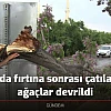 Elazığ’da etkili olan fırtına sonrası ağaçlar devrildi, çatılar uçtu.