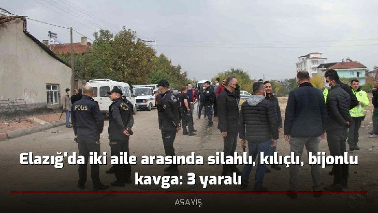 Elazığ'da husumetli olan akraba iki aile fertleri arasında çıkan ve pompalı ve çifteli tüfek, kılıç, bıçak, bijon, satır, levye, satır ile taşın kullanıldığı kavgada, 3 kişi yaralandı. Polis ekipleri, olaya karışan 3 kişiyi gözaltına aldı.