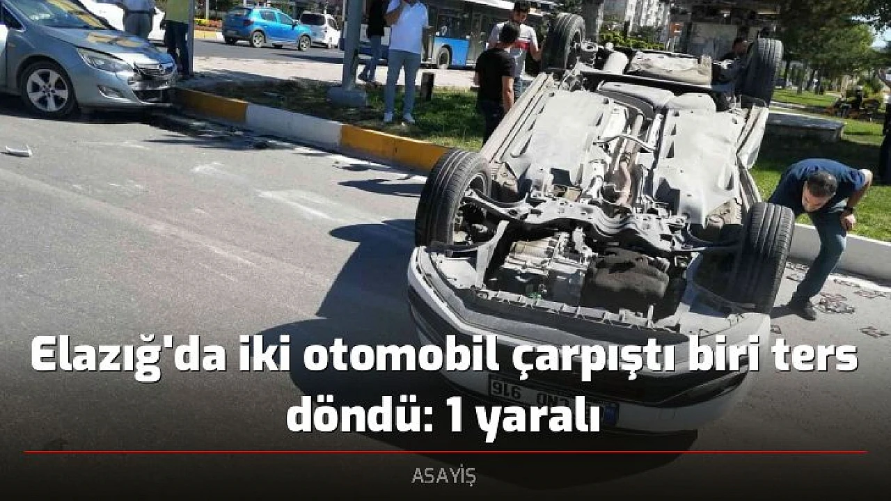 Elazığ'da iki otomobilin çarpışması sonucu bir araç ters döndü. Kazada bir kişi yaralandı.