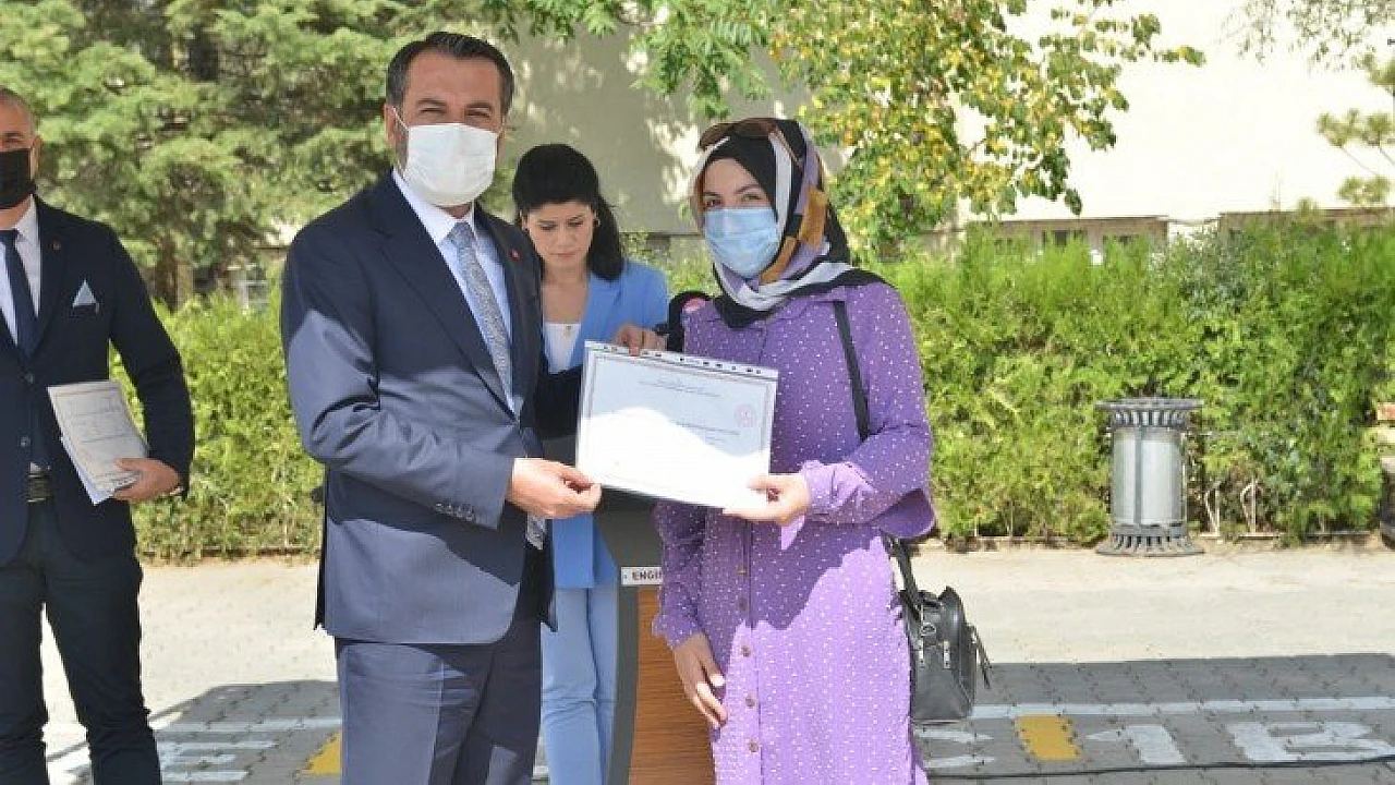 Öğrencilerin birbirlerine çiçek vermesinin ardından tören sona erdi.