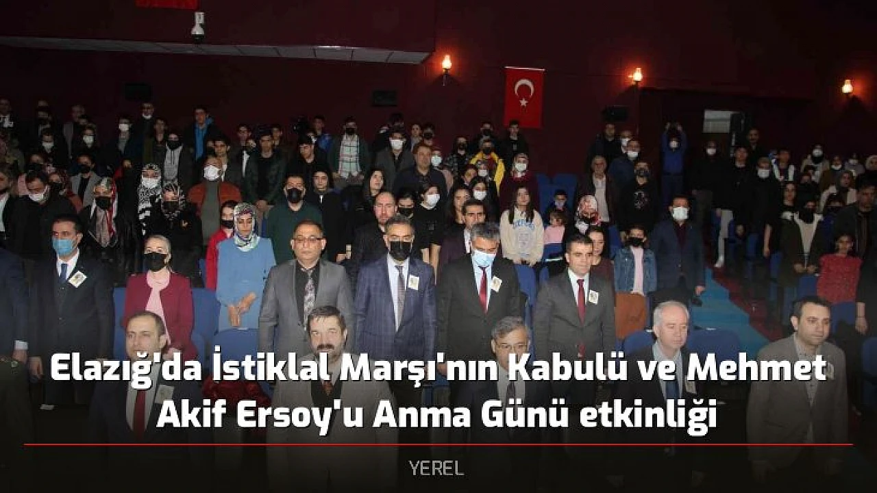 Elazığ Ahmet Kabaklı Fen Lisesi öğrencileri tarafından Elazığ Belediyesi Bünyamin Eroğlu Kültür ve Kongre Merkezinde 12 Mart İstiklal Marşı’nın Kabulü ve Mehmet Akif Ersoy’u Anma Günü programı düzenlendi. Programa Vali Vekili Abdulkerem Abbasoğlu, 8. Kolordu Kurmay Başkan Vekili Piyade Albay Gökhan Ardıç, Elazığ Belediye Başkan Yardımcısı Nazif Bilginoğlu, İl Emniyet Müdürü Celal Sel, öğrenciler ve vatandaşlar katıldı. Saygı duruşu ve İstiklal Marşı’nın okunmasıyla başlayan program Fen Lisesi Müdürü Murat Koç’un açılış konuşmasıyla devam etti. Mehmet Akif Ersoy’u anlatan sinevizyon gösterisinin ardından program sırasıyla Mehmet Akif Ersoy’un ‘Bülbül’ şiirinin okunması, İstiklal Bülbülü tiyatro oyununun sergilenmesi, kareografi gösterisiyle devam etti.