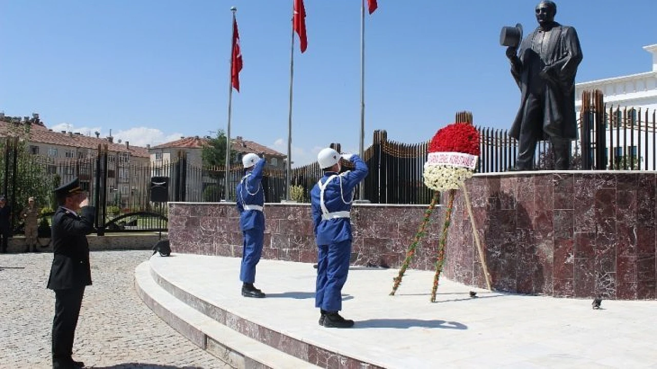 Jandarma teşkilatının 180. kuruluş yıl dönümü nedeniyle Elazığ İl Jandarma Komutanlığı tarafından Atatürk anıtına çelenk konulurken, Vali Çetin Oktay Kaldırım'da mesaj yayınladı.