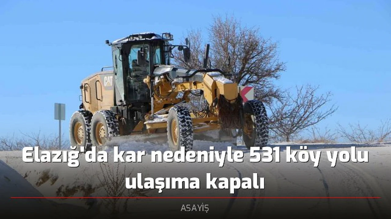 Meteorolojinin uyarısının ardından yoğun kar yağışı Elazığ genelinde etkili oldu. Kar yağışı nedeniyle kent genelinde 547 köy yolu ulaşıma kapandı. Valilik koordinesinde İl Özel İdare Genel Sekreterliğine bağlı karla mücadele ekiplerinin çalışmasıyla şuana kadar 16 köy yolunun açıldığı bildirildi. Kapalı bulunan 531 köy yolunun açılması için yoğun çalışma yapıldığı aktarıldı. Kent merkezinde ise belediye ekiplerinin karla mücadele çalışmasını sürdürdüğü öğrenildi.