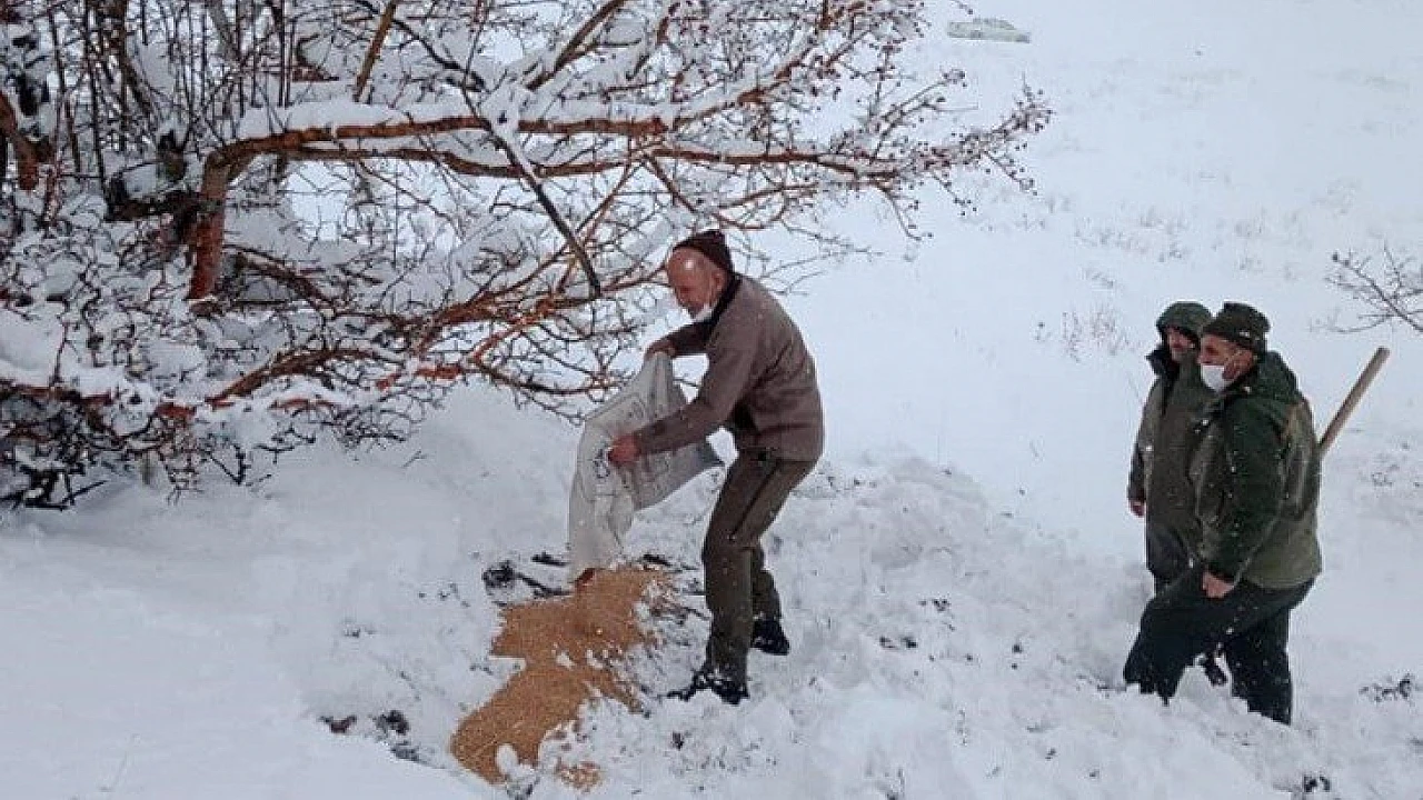 Elazığ'da kar yağışının etkili olduğu yüksek rakımlı bölgelerde yaban hayatının desteklenmesi için yem bırakıldı.