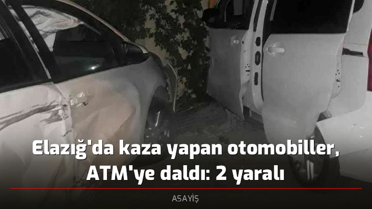 Elazığ'da iki otomobilin çarpışması sonucu meydana gelen kazada 2 kişi yaralanırken, otomobiller ATM ve duvara çarparak durabildi.