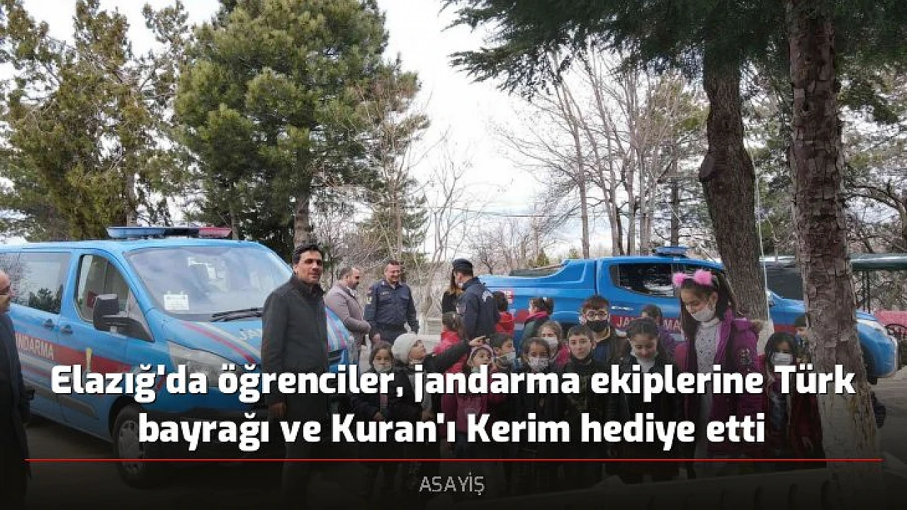 Elazığ'da öğrenciler, jandarma ekiplerine Türk bayrağı ve Kuran'ı Kerim hediye etti