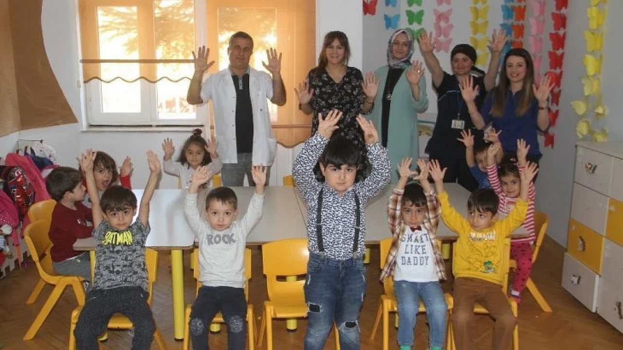 Anaokulundaki öğrencilere el yıkamanın önemi hakkında bilgi verdiklerini belirten Doç. Dr. Özcan Deveci, “Enfeksiyon hastalıkları toplumu yakından ilgilendiren bir konudur. Özellikle mikroorganizmalar bilindiği gibi ellerle bulaşabiliyor ve bunlar da toplum sağlığını etkileyebiliyor. Çocuklar da toplu alanlarda kaldığı için birçok bulaşıcı hastalık görülüyor"dedi.