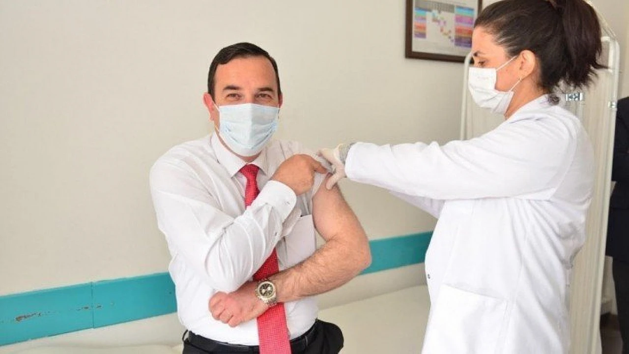 Aile Sağlık merkezinde öğretmenler ile birlikte aşı olan Milli Eğitim Müdürü Gürtürk, "Bugün randevumuzu alarak Covid-19 aşımızı yaptırdık. Okullarımızın yüz yüze eğitime başlaması ile birlikte Sağlık Bakanlığımız eğitim çalışanlarımızı ön sıralara aldı. Tüm öğretmenlerimiz sistem üzerinden randevularını alarak aşılarını tüm sağlık merkezlerimizde rahatlıkla yaptırabilecekler. Hepimizin amacı Elazığ’ın risk haritasında sarı olan renginin maviye dönüşmesi için elimizden gelen gayreti sarf ederek maske, mesafe ve temizlik gibi kurallara uymaktır. Okullarımızda eğitimin sağlıklı bir şekilde yürütülmesi, ilimizdeki iş yerlerinin açılarak faaliyetlerini yürütmeleri, kamu kurum ve kuruluşlarımızın vatandaşımıza daha hızlı ve sağlıklı hizmet edebilmesi için üzerimize düşen her şeyi yapmalıyız" dedi.