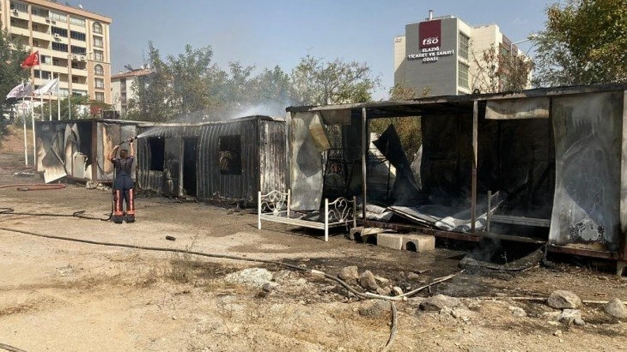 Elazığ'da okul şantiyesinde çıkan yangında konteynerler küle döndü