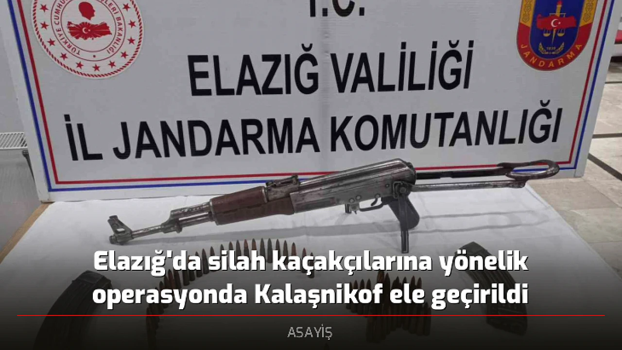 Elazığ'da jandarma ekipleri tarafından silah kaçakçılarına yönelik düzenlenen operasyonda 1 adet Kalaşnikof piyade tüfeği, 2 adet şarjör ve 100 adet mermi ele geçirildi.