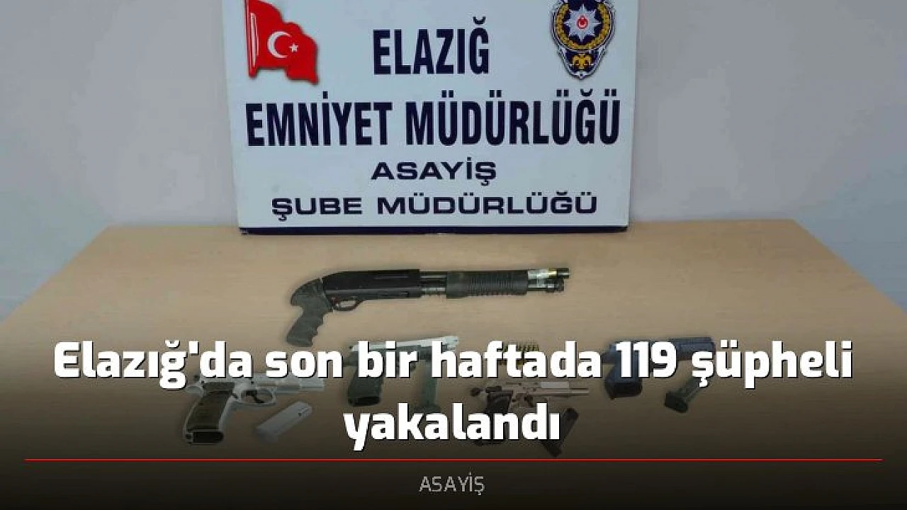 Elazığ İl Emniyet Müdürlüğü ekipleri tarafından son bir haftada gerçekleştirilen asayiş uygulamalarında 119 şüpheli yakalanırken, zanlılardan 24'ü tutuklandı.