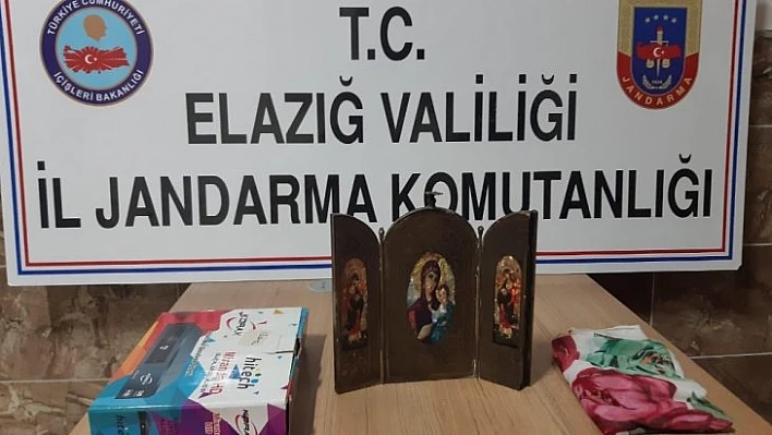 Elazığ'da jandarma ekiplerinin yaptığı çalışmada anten kutusu içerisinde eşarba sarılı olarak tarihi haç işaretli 'pirinç fresk ele geçirildi.