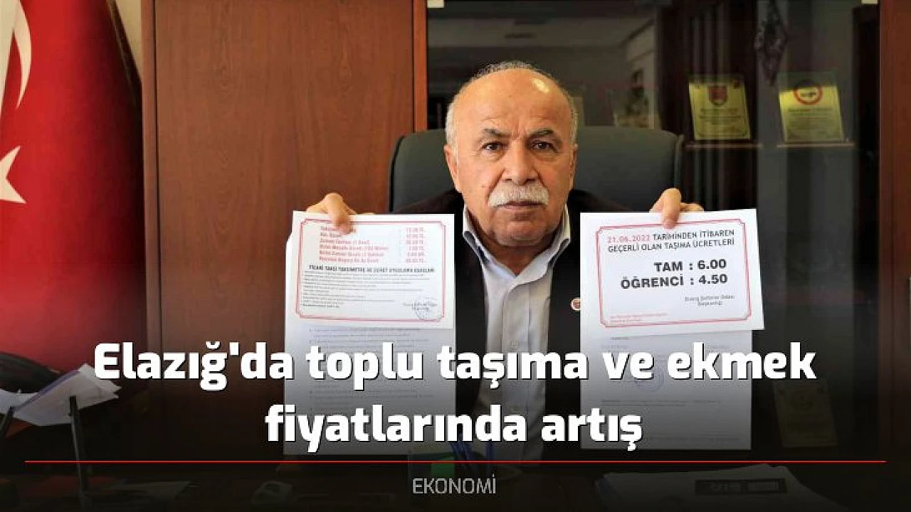 Elazığ Şoförler Odası ve Fırıncılar Odasının aldığı karar doğrultusunda toplu taşıma ücretleri yüzde 50, ekmekte yüzde 33 artış gerçekleştirildi. Yeni tarifeye göre, 200 gramlık ekmek 3 liradan 4 liraya, 4 liralık şehir içi ulaşım bedeli de 6 liraya çıktı.