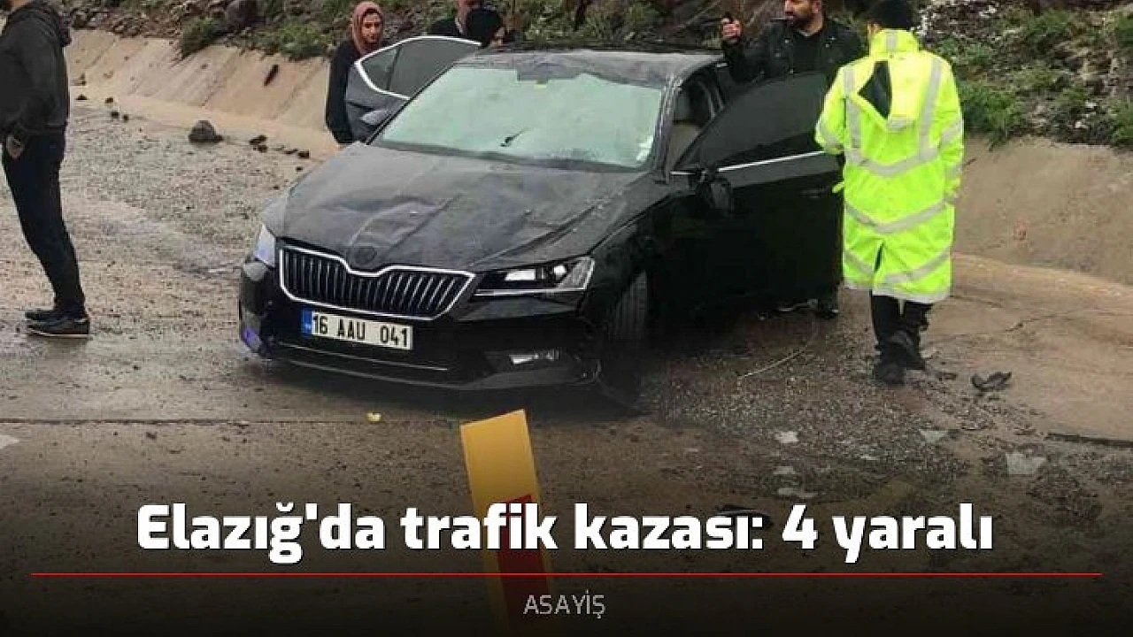 Elazığ'da dolu yağışından dolayı kayganlaşan yolda, sürücüsünün direksiyon hakimiyetini kaybettiği otomobil yoldan çıktı. Kazada 4 kişi yaralandı.