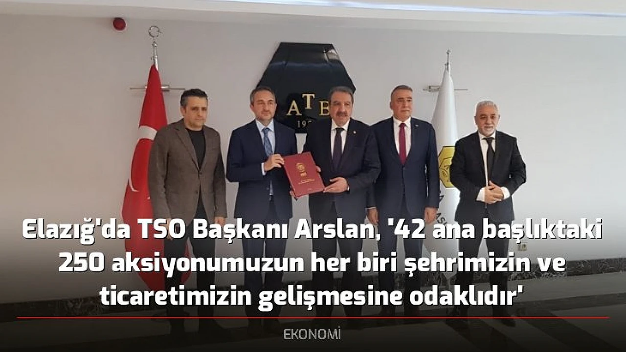 - Elazığ'da TSO Başkanı Arslan, '42 ana başlıktaki 250 aksiyonumuzun her biri şehrimizin ve ticaretimizin gelişmesine odaklıdır'