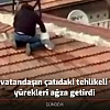 Elazığ'da vatandaşın çatıdaki tehlikeli yürüyüşü yürekleri ağza getirdi