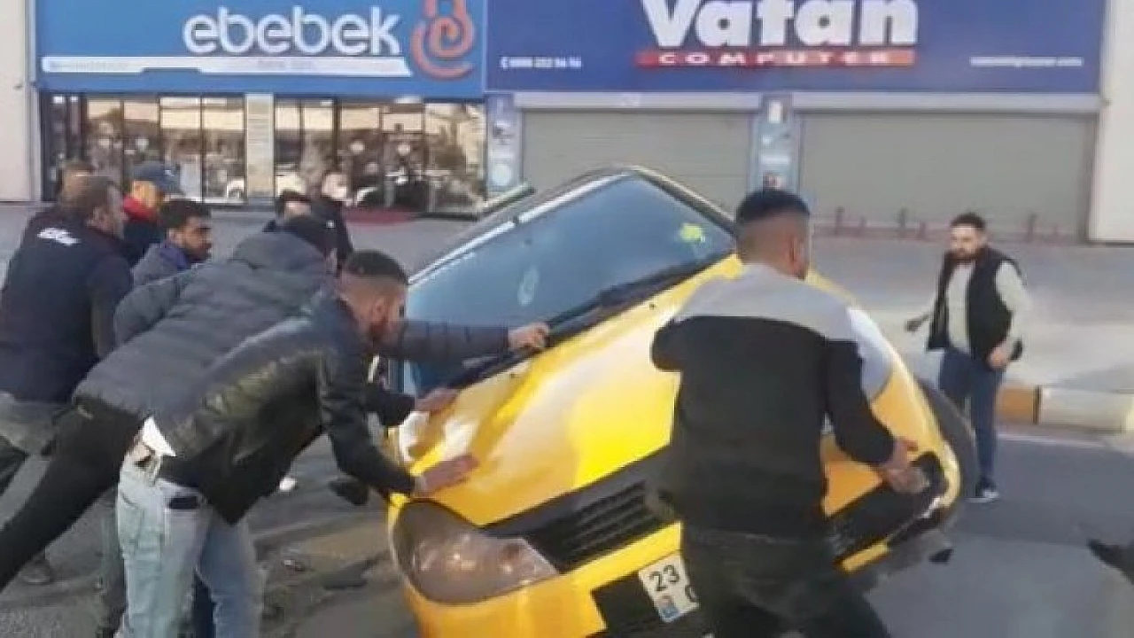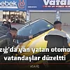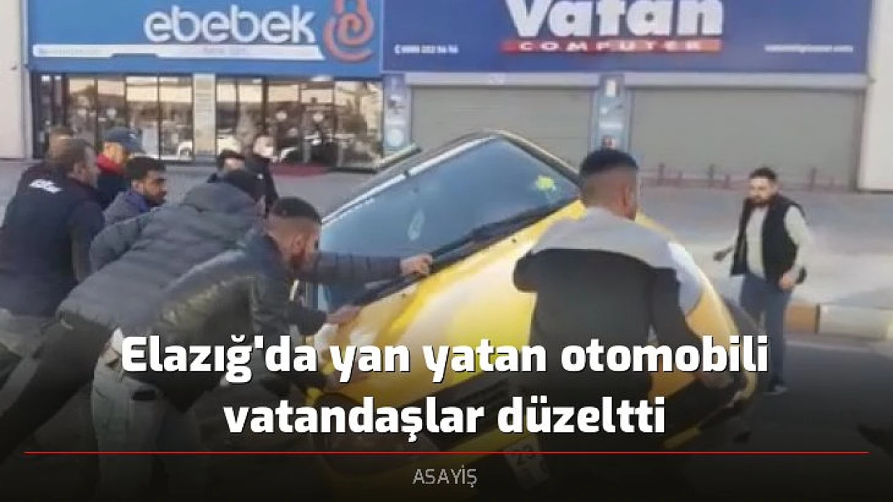 Elazığ'da yan yatan otomobili vatandaşlar düzeltti