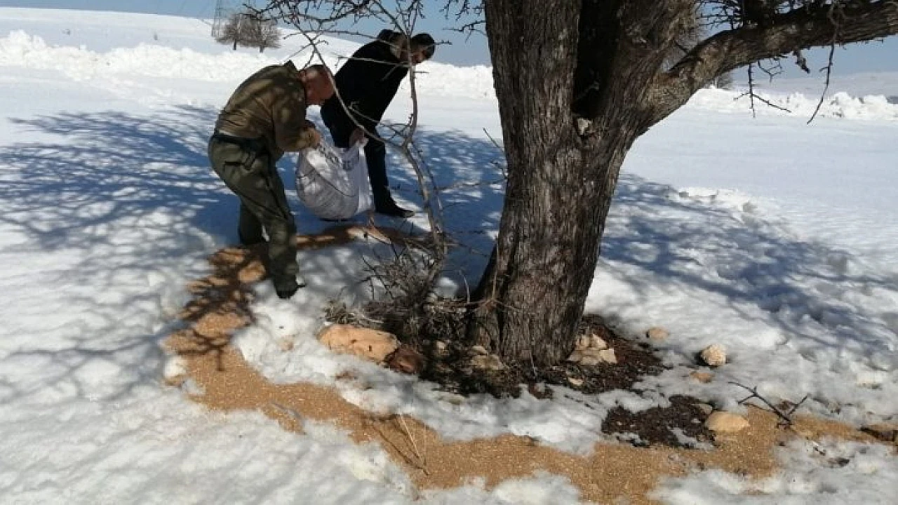 Elazığ'da kış mevsimi nedeniyle yüksek rakımlı bölgelere yaban hayvanları için yem bırakıldı.