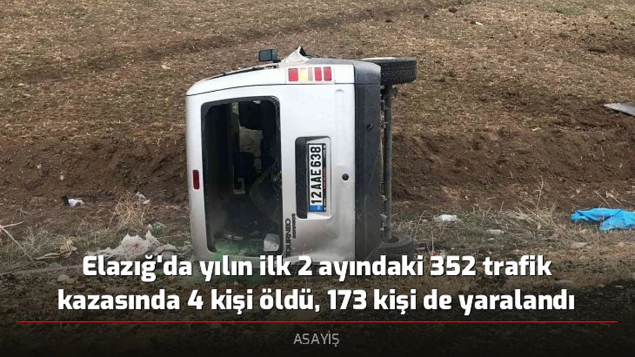 - Elazığ'da yılın ilk 2 ayındaki 352 trafik kazasında 4 kişi öldü, 173 kişi de yaralandı