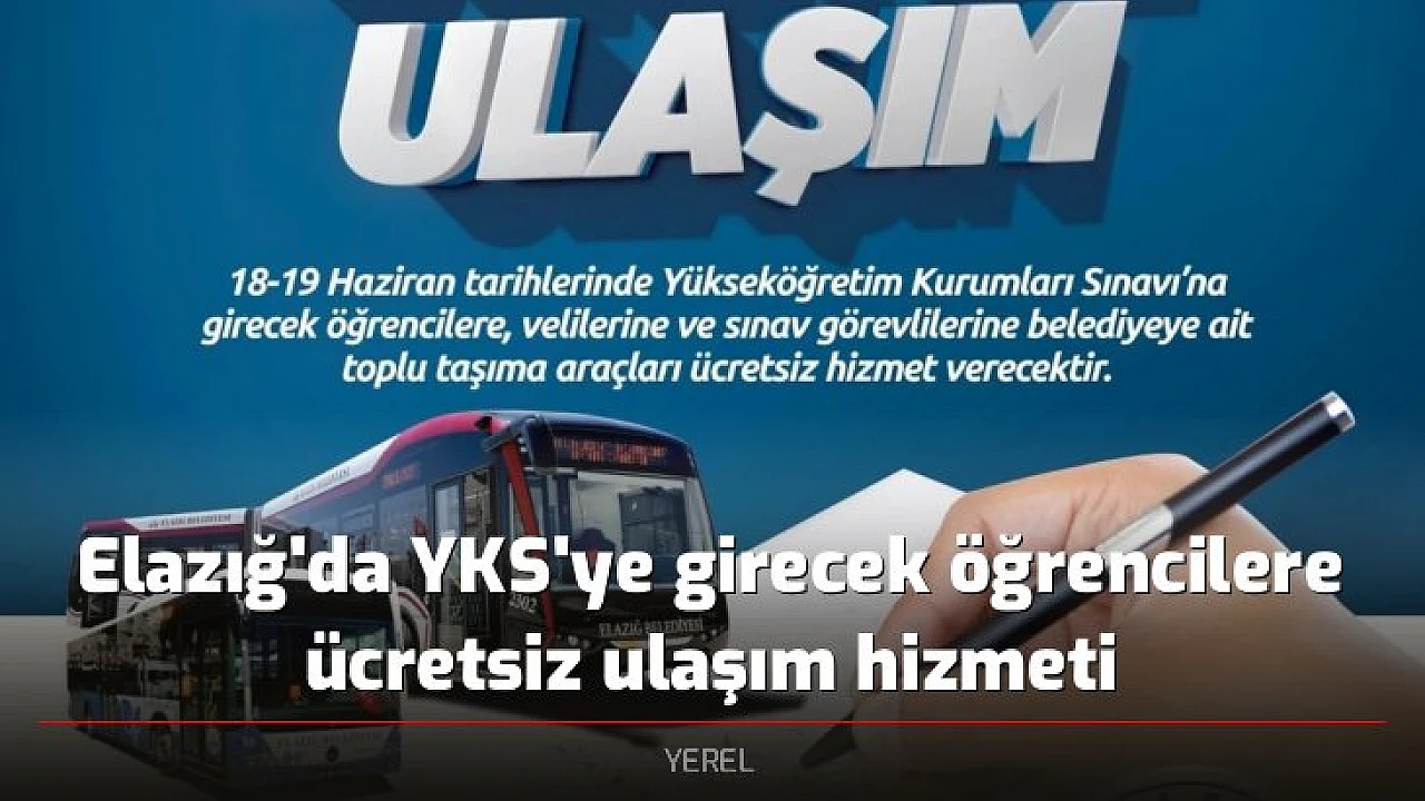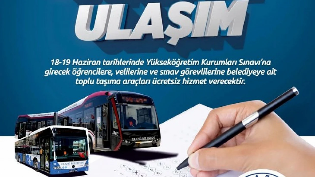 Elazığ Belediyesi, 18-19 Haziran tarihlerinde yapılacak olan Yükseköğretim Kurumları Sınavlarına (YKS) girecek öğrenciler için ücretsiz ulaşım hizmeti vereceğini açıkladı.