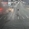 Vatandaşların o anda kaçışmasının yanı sıra ortaya çıkan toz bulutu da görüntülere yansıdı.