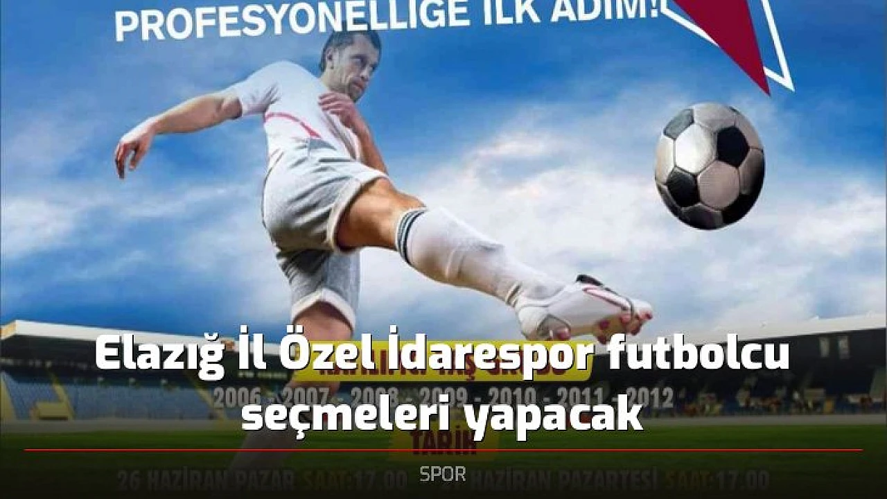 Elazığ futbolunun alt yapıdan çıkardığı oyuncularıyla ünlenen takımı İl Özel İdarespor, futbolcu seçmeleri yapacak. Önceki sezonlarda yapılan seçmelerle birçok sporcuyu lisans çıkararak alt yapısına alan ve daha sonra ise bu isimleri Türk futboluna kazandıran Elazığ İl Özel İdarespor Kulübü, yapılacak olan seçmelerle yeni yetenekleri bünyesine katmaya hazırlanıyor. Bu bağlamda 2006-2007-2008-2009-2010-2011 ve 2012 yaş gruplarında gerçekleştirilecek olan futbolcu seçimleri 26 Haziran Pazar ve 27 Haziran Pazartesi günleri saat 17.00’da yapılacak.